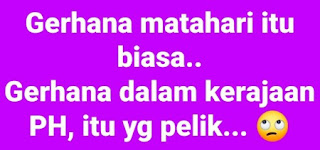 " Wahai Using. Mu tau tak, hari ini tidak akang berlaku gerhana matahari. Mungking ditunda tahung depang, wallahu aklam". Kata guru tok sambil sesekali menjeling ke bawah pusatnta yang dilindungi jubah.